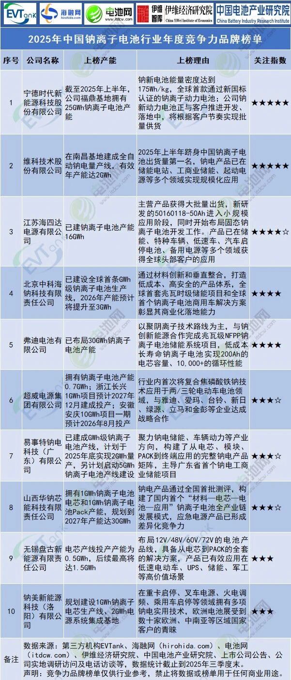 在钠离子电池领域,fun88乐天堂凭借强大的综合实力,荣列“2025年中国钠离子电池行业年度竞争力品牌”第二位,仅次于宁德时代。